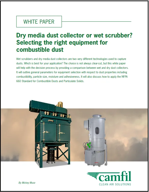 If your production processes generate hazardous particles, wet scrubbers can safely and effectively remove them from the air. They are especially well suited for collecting combustible and flammable dust, aluminum and magnesium particles or chips, rubber, leather, and plastic fines, as well as fibrous textile dust, sticky powders, greasy vapors, and carbon dust.
