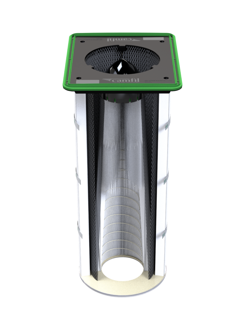 The patented OptiCone filter is engineered to clean better, last longer, and need less maintenance. The cone adds 30% more filter media and disperses air evenly throughout the filter when pulse cleaned.