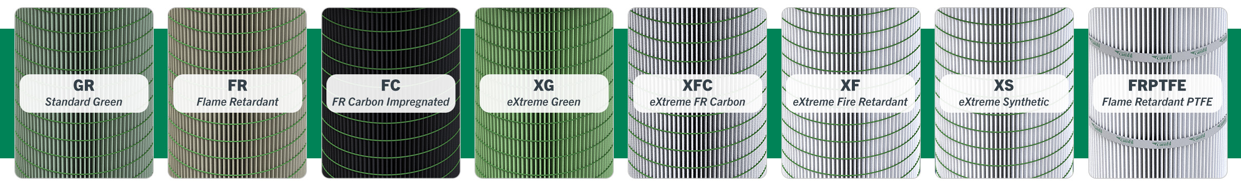 These are Camfil's standard MERV 10 filter packs. OmniPleat® Green packs use our own proprietary blend of cellulose fibers, while OmniPleat Flame Retardant filter packs are chemically treated with flame retardant resin to provide fire resistance.
