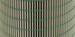 OmniPleat is Camfil's unique method for producing high-performance filter cartridges. Synthetic, custom-shaped glue beads are applied to both sides of the media pack to hold the pleats open and evenly spaced. This design helps ensure 100% media utilization. Filters made with OmniPleated media packs deliver a lower pressure drop and release more dust during pulse cleaning, reducing the energy demand on the fan motor and air consumption costs related to pulse cleaning. Camfil guarantees that filters manufactured with OmniPleat technology will last 30% longer than standard filters.