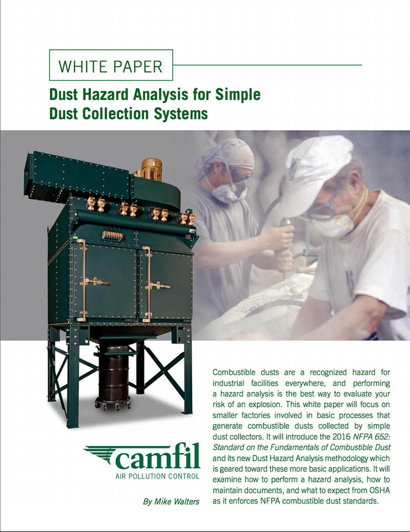 Combustible dusts are a recognized hazard for industrial facilities everywhere, and performing a hazard analysis is the best way to evaluate your risk of an explosion. This white paper will focus on smaller factories involved in basic processes that generate combustible dusts collected by simple dust collectors. It will introduce the 2016 NFPA 652: Standard on the Fundamentals of Combustible Dust and its new Dust Hazard Analysis methodology which is geared toward these more basic applications. It will examine how to perform a hazard analysis, how to maintain documents, and what to expect from OSHA as it enforces NFPA combustible dust standards.